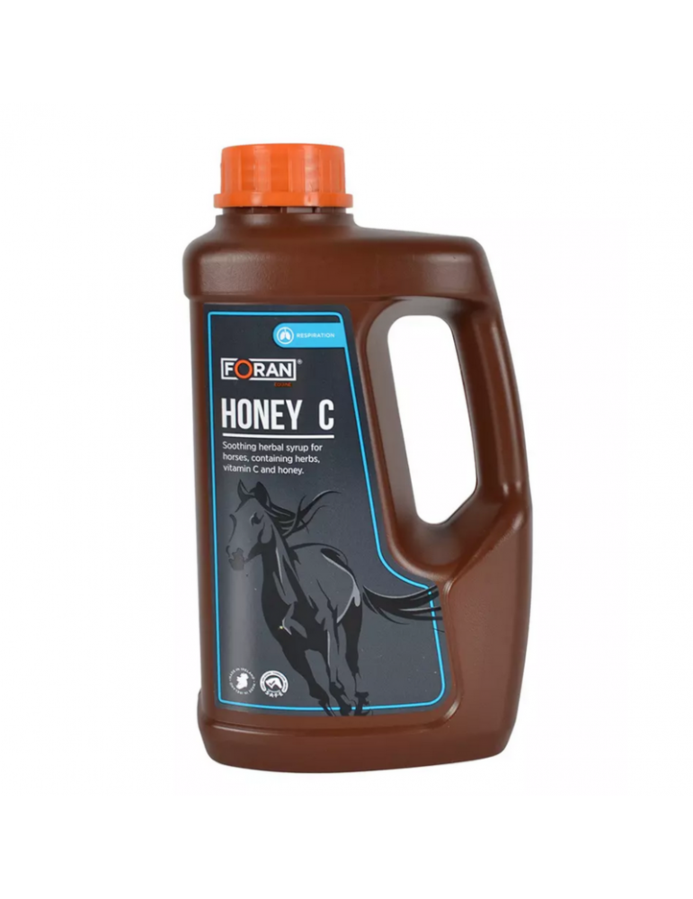 HONEY C (1L) de la marque Foran est un sirop appétant spécialement formulé pour soutenir le système respiratoire du cheval. Grâce à sa composition naturelle à base de miel, d’extraits de thym, de réglisse et de marrube, il aide à dégager les voies respiratoires tout en apportant un effet apaisant en cas d’irritation.