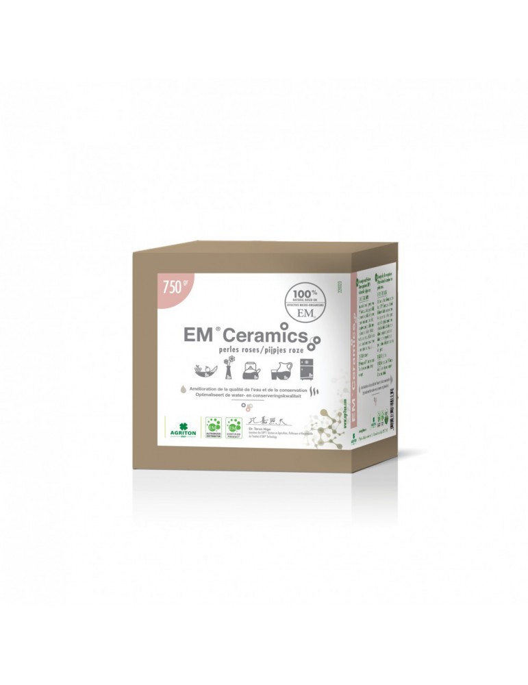 La technologie EM® Ceramics rose est le produit de la cuisson à haute température (800°C) d’une argile fermentée par les EM®. Les perles roses peuvent capter différentes molécules, et permettent notamment d’éliminer plus rapidement certaines substances comme le chlore et l'ammoniac. La forme de perle leur permet de s’attacher facilement et leur taille est idéale pour tout type de petits contenants.