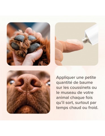 - Appliquer le baume sur les coussinets chaque fois que votre animal sort, ou lorsqu’il va courir et jouer, en particulier en période de grand froid.