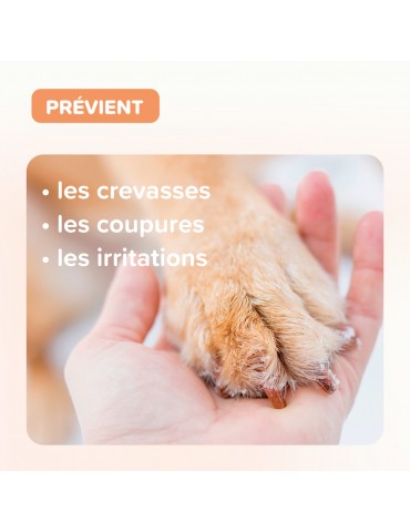 Il adoucit les coussinets, agit contre les crevasses et prévient les irritations.