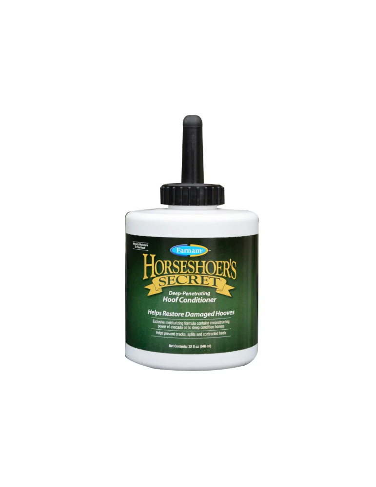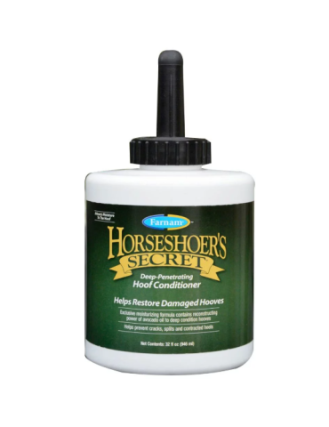 HORSESHOER’S SECRET HOOF SEALANT convient particulièrement pour fortifier les cornes sèches, cassantes et fissurées. Il est également conseillé pour protéger les sabots des chevaux non ferrés.