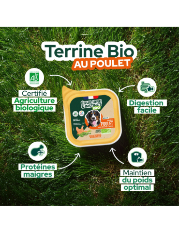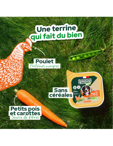 Barquette de terrine bio équilibre & instinct au poulet pour chien
