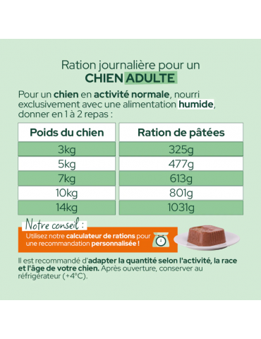 Pour un chien ayant une activité normale et nourri exclusivement avec une alimentation humide :